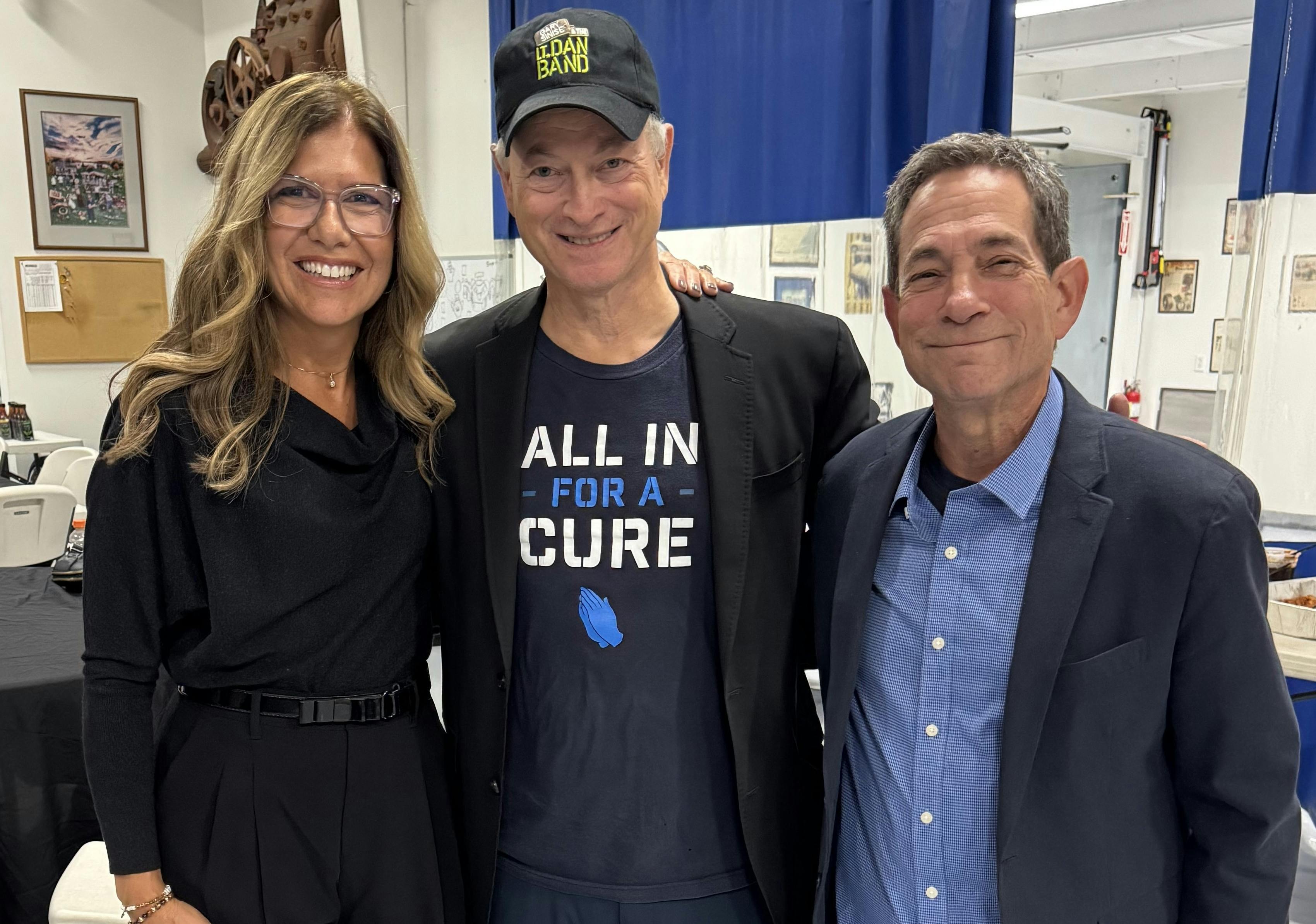 Chordoma survivor Jack Dworkin (R) with wife Marie and Gary Sinise