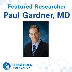 Dr. Gardner has been a regular speaker at the Chordoma Foundation’s Community Conferences, and recently joined the Medical Advisory Board to help guide development of the Foundation’s patient services and clinical research strategies. In November 2015, he participated in an international meeting of medical experts organized by the Foundation to define a standard of care for treating chordoma patients at every stage of their disease so that physicians everywhere will know the best course of treatment. He also encourages his patients to donate a portion of their removed tumors to the Chordoma Foundation Biobank so it can be shared with researchers worldwide to better understand and treat chordoma. Other portions of the tumor are used to conduct studies at UPMC, including research to identify biomarkers that can help predict patient outcomes and enable more personalized treatment approaches.