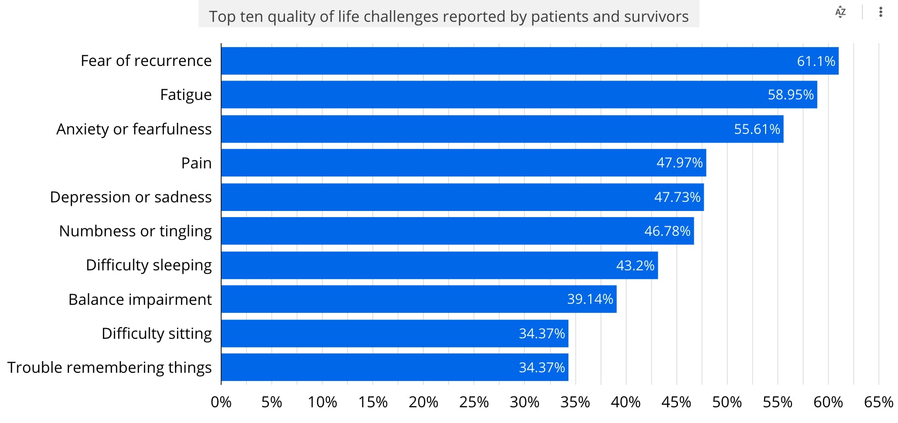 - Over 75 percent of survivors experience 5 or more quality of life challenges, but only 62 percent of those who do say they accessed care for those needs, and just 41 percent say that their needs were met by that care.
